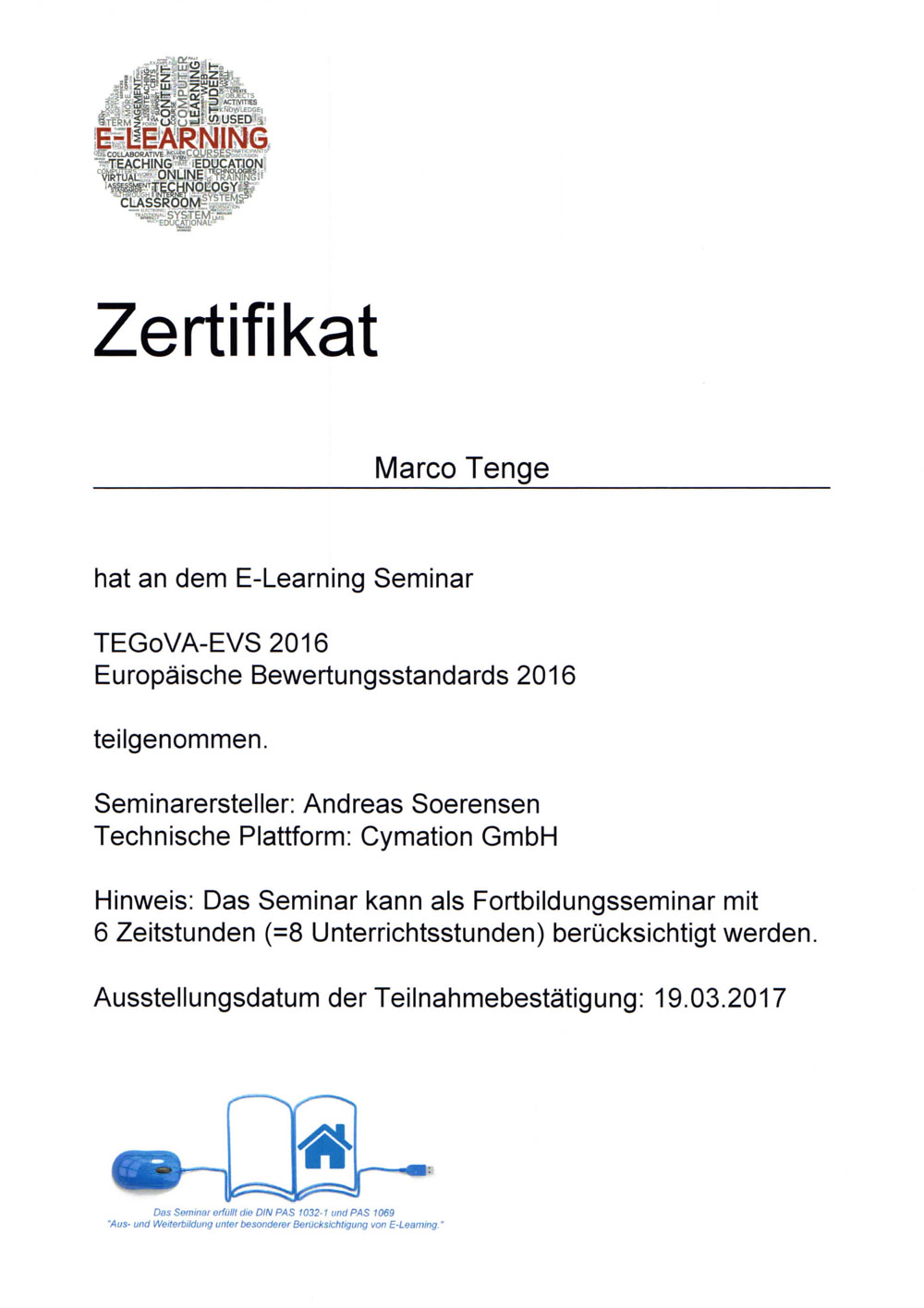 Zertifizierter Sachverständiger für Immobilienbewertung (DIAZert) für die Marktwertermittlung gemäß ImmoWertV und Beleihungswertermittlung gemäß BelWertV aller Immobilienarten (F) nach DIN EN ISO/IEC 17024