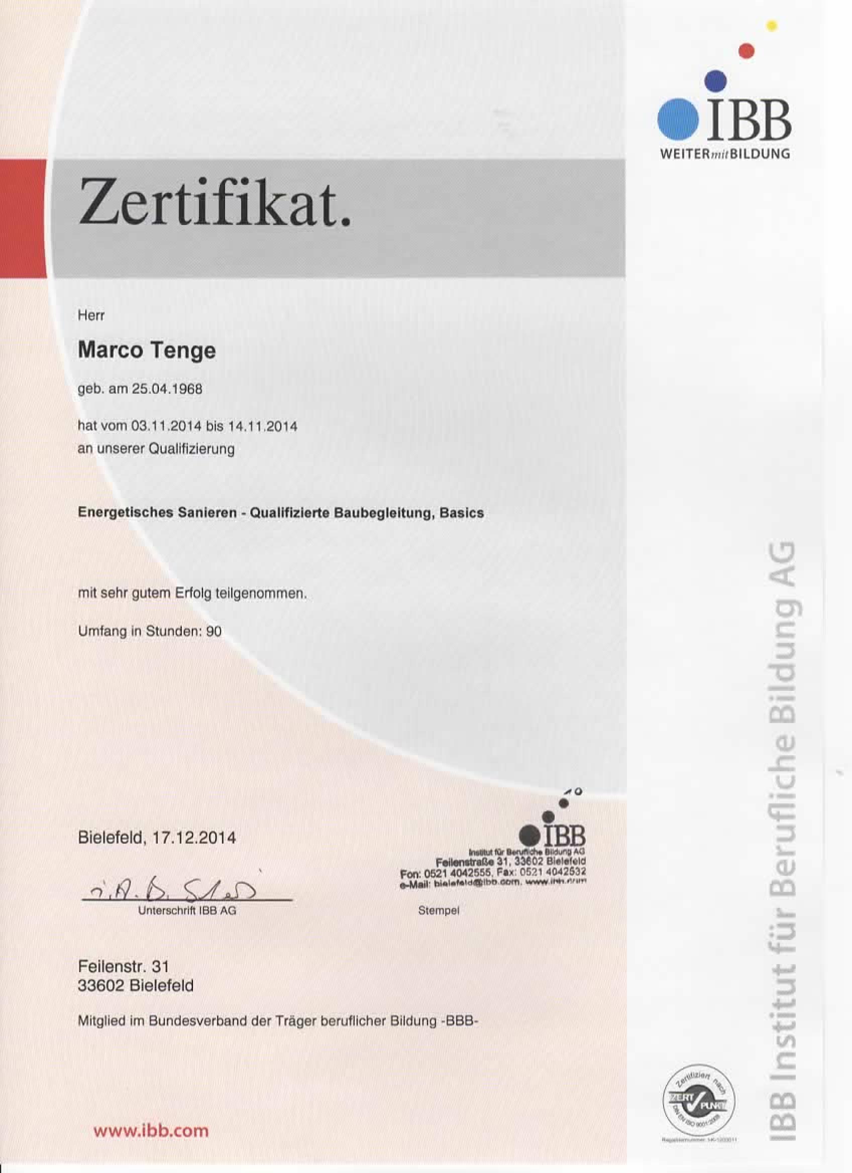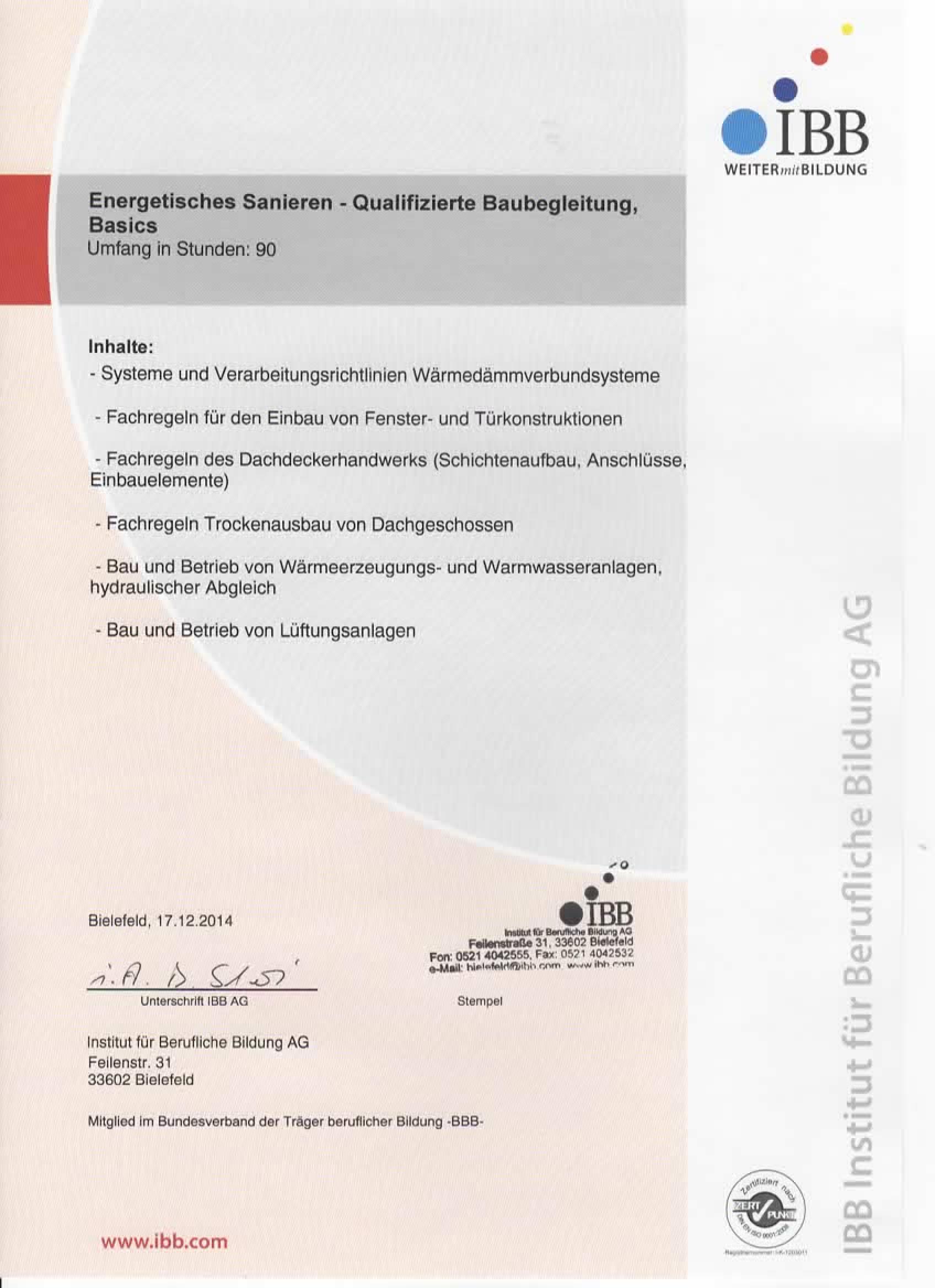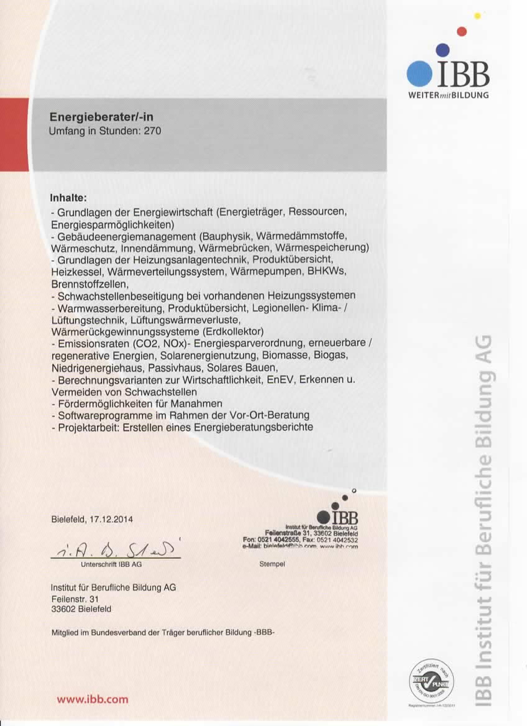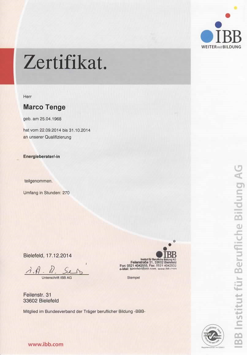 Energieberater (IBB) für Wohn- und Nichtwohngebäude sowie für Modernisierungen und Sanierungen im Bestand